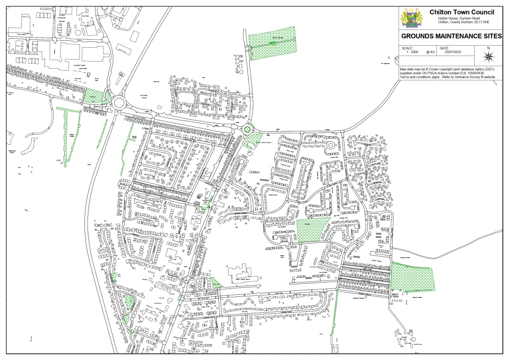The areas we maintain are clearly marked in green on the town map below, helping residents and visitors easily identify where the Council’s responsibilities lie.